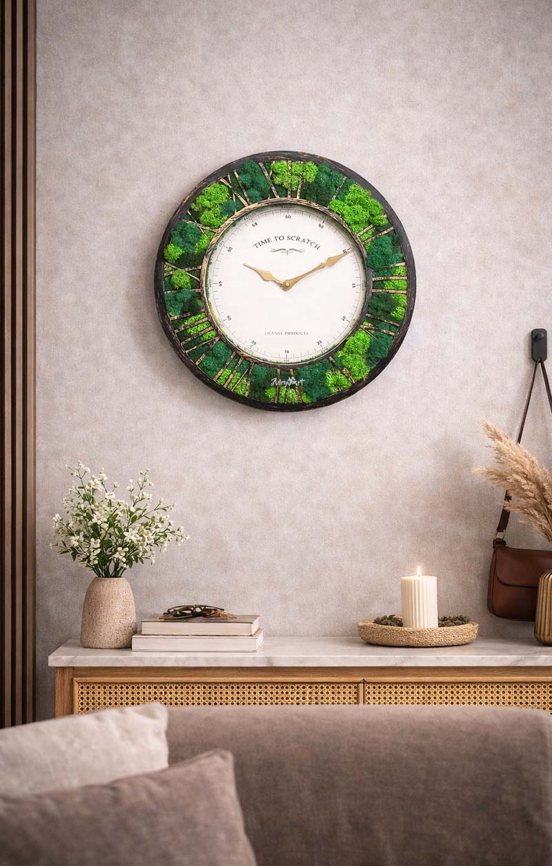 Un ceas vintage de perete cu licheni naturali, cu mecanism silentios ce se poate inlocui in timp, continua sa se afle in topul preferintelor iubitorilor de frumos. Lichenii multicolori naturali amplifica unicitatea elementului de decor, perfect functional, adaugand un plus de culoare si rafinament in orice incapere.