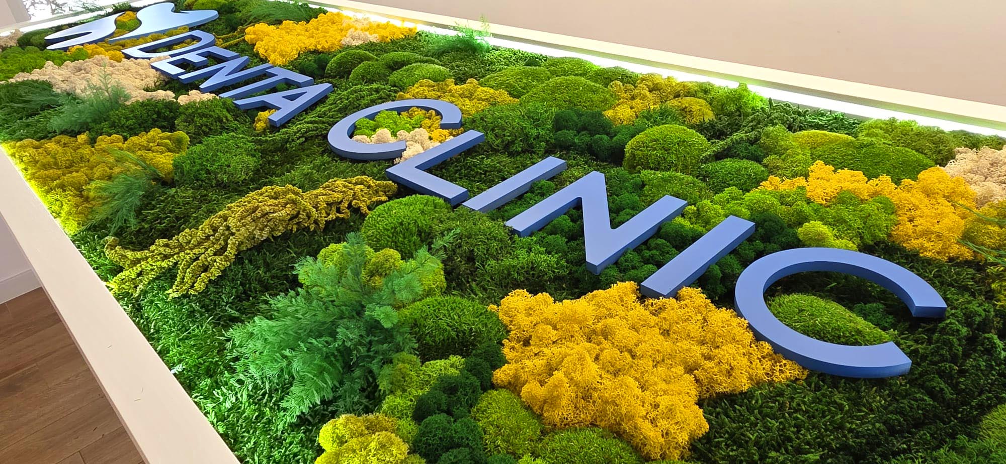 Lichenii si plantele stabilizate nu necesita udare, lumina naturala sau intretinere, pastrandu-si aspectul proaspat si intens pentru multi ani. Fiecare logo este realizat la comanda, adaptat dimensiunilor, culorilor si identitatii vizuale a clientului.