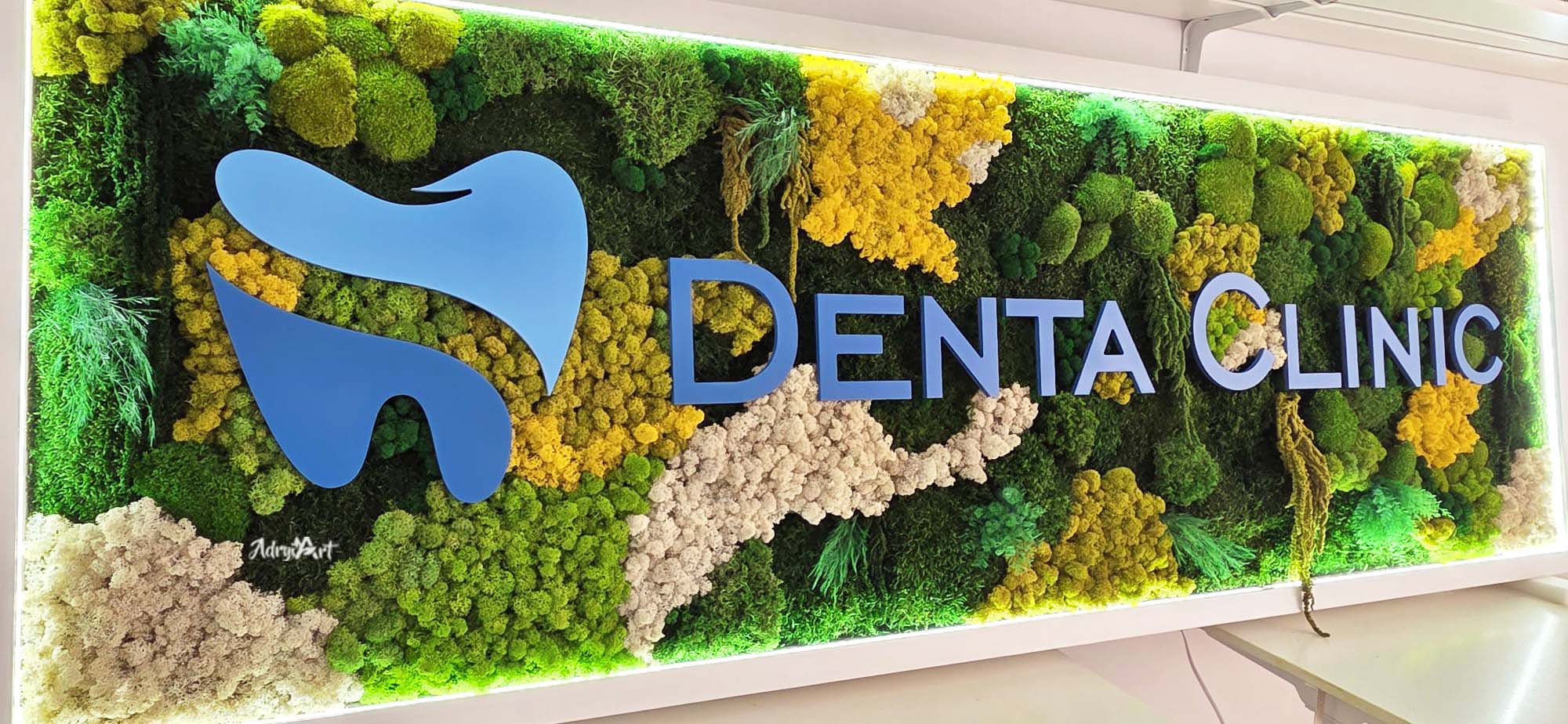 Acest logo vegetal personalizat este realizat manual din licheni naturali stabilizati, muschi si plante, atent selectate pentru a crea un impact vizual puternic si elegant. Cu o dimensiune impresionanta de 237 x 81 cm, lucrarea devine punctul central al spatiului si transmite profesionalism, naturalete si atentie la detalii.